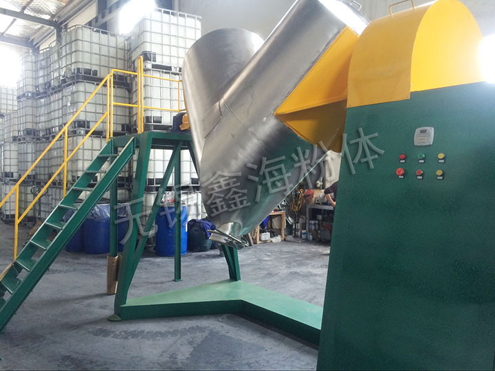 V型混料機(jī)為高效不對(duì)稱(chēng)混料機(jī),它適用于化工、食品、醫(yī)藥、飼料、陶瓷、冶金等行業(yè)的粉料或顆料狀物料的混合。該機(jī)混料筒結(jié)構(gòu)獨(dú)特,混合均勻,效率高,不積料,操作密閉,進(jìn)出料方便,外表面和物料接觸部分均采用好不銹鋼制造,造型美觀,維護(hù)、清洗方便,是企業(yè)的基礎(chǔ)設(shè)備之一。
